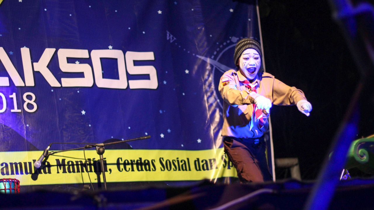 Acara yang ditunggu-tunggu adalah api unggun ceria. Upacara api unggun ceria dimulai pukul 20.00. Para peserta berdiri membentuk formasi lingkaran besar. Puncak acara adalah penyalaan api unggun yang ditandai dengan penyalaan kembang api. Pentas seni pun turut memeriahkan kegiatan api unggun ceria. Para peserta pentas seni menampilkan seni pertunjukan yang cukup menghibur, di antaranya musikalisasi puisi, pantomime, dongeng cerita rakyat, dan teater. Para kakak pembina juga turut serta dalam kegiatan pentas seni dengan menampilkan beberapa lagu plesetan untuk menghibur peserta.