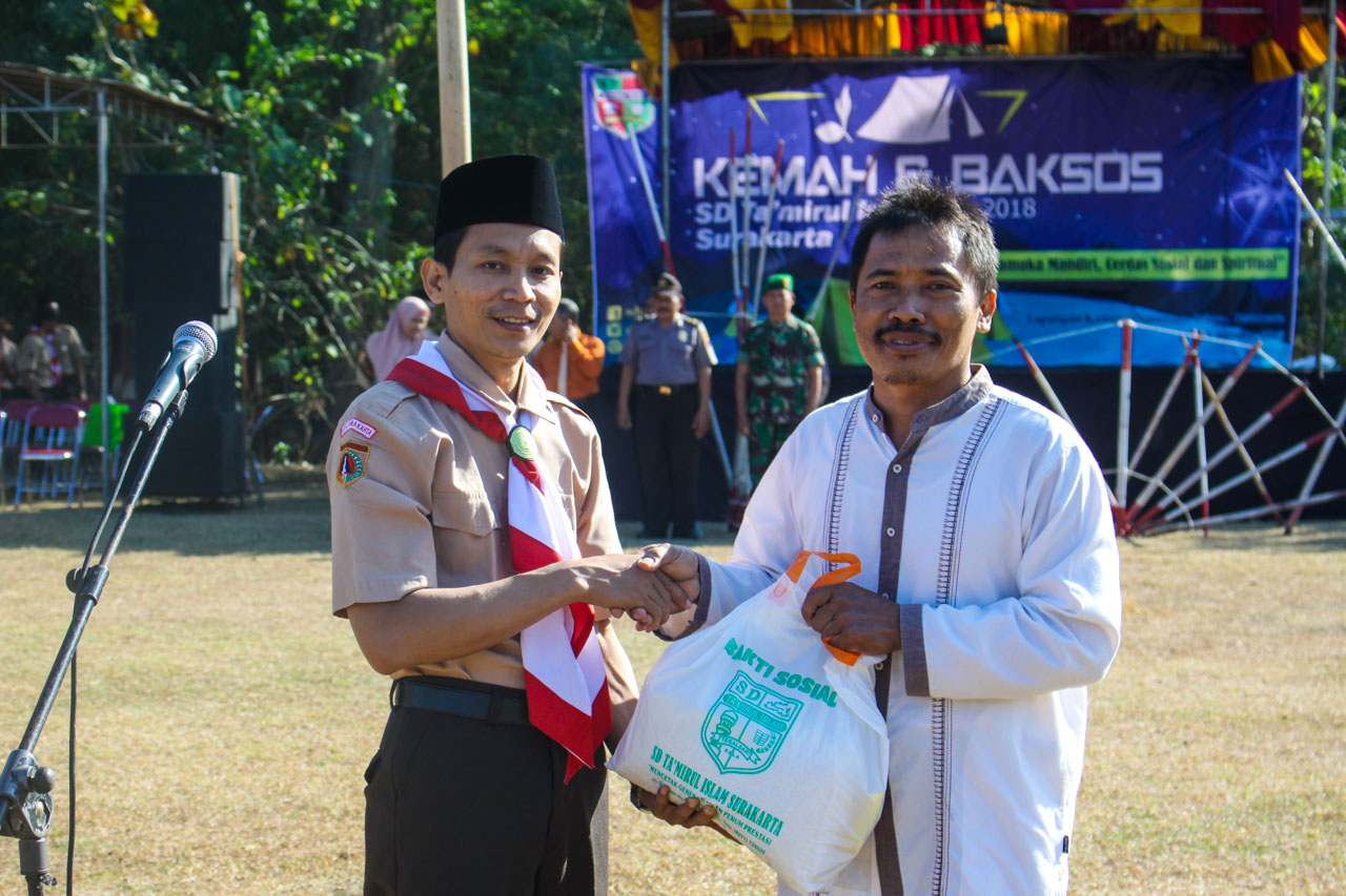 Seusai istirahat, salat, dan makan, diadakan kegiatan bakti sosial berupa pembagian paket sembako. Paket sembako ini adalah hasil pengumpulan oleh siswa SD Ta’mirul Islam Surakarta secara sukarela sebelum kegiatan kemah dimulai. Paket sembako dibagikan kepada masyarakat sekitar Ngoresan yang dinilai tidak mampu. Kegiatan bakti sosial ini bekerja sama dengan ketua RT setempat untuk menentukan keluarga yang diberi paket sembako.